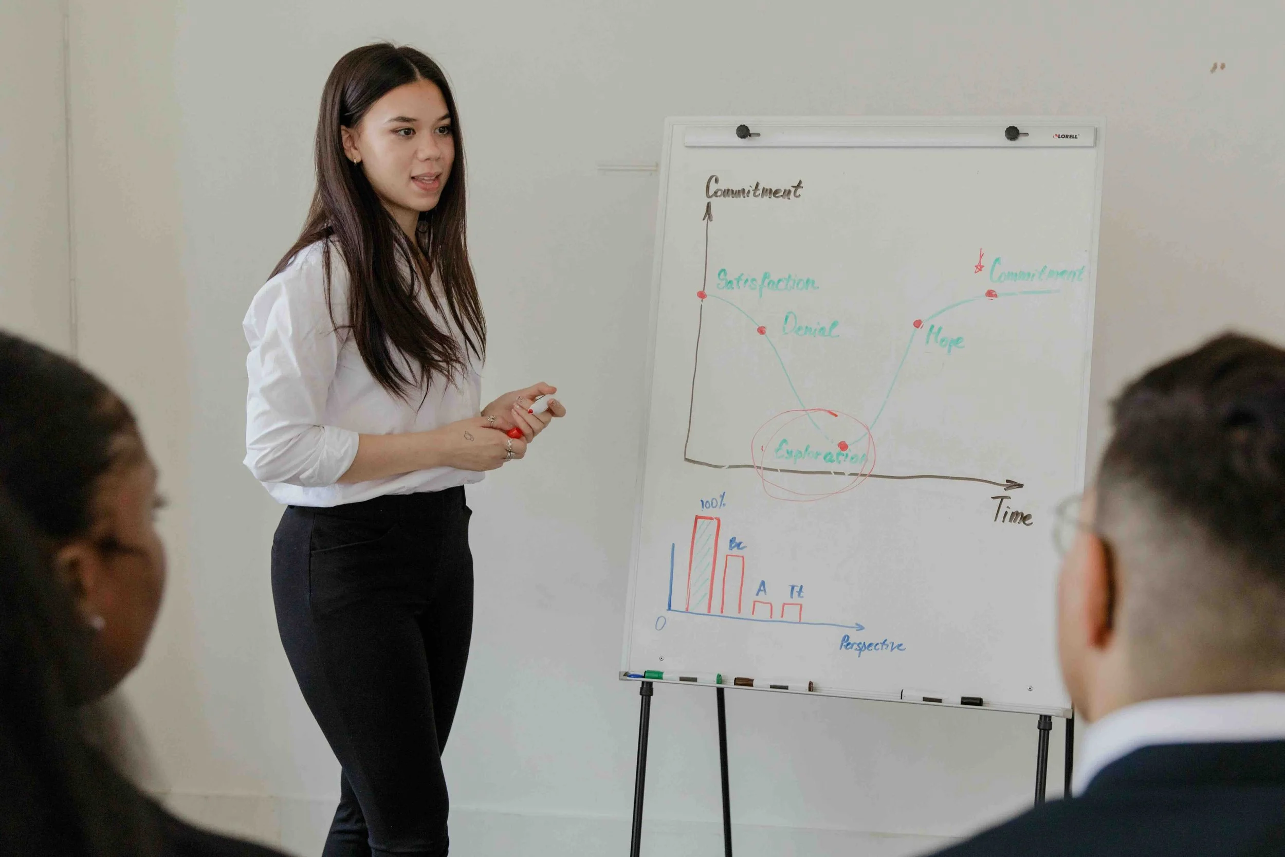 A trainer presents a model on a whiteboard while participants take notes. It looks like learning, but traditional methods like this often fail. They rely on information delivery rather than interaction, leaving learners passive and limiting real-world application. Image Source.